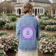 Esta impresionante chaqueta de denim presenta una imagen gráfica de una linda abeja morada con piernas negras y ojos turbios. Tiene un cuerpo difuso de color lavanda con rayas moradas y una bonita antena púrpura en su nublada cabeza. Sus delicadas alitas tienen un patrón azul pálido en el suelo. El diseño también incluye girasoles morados de bonito. El texto es personalizable, por lo que puede incluir el nombre de su bebé hermoso y puede eliminarlo según corresponda para anunciar el sexo del bebé. El diseño es neutro desde el punto de vista del género, por lo que es adecuado para un niño o niña.