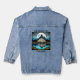 Chaqueta vaquera temática de camping. Arte de ia bastante con una tienda reflejada en el agua azul.