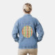 Esta chaqueta de denim tiene un diseño moderno de mediados de siglo de rectángulos redondeados con agujeros como fondo con cadenas redondeadas en primer plano todo en colores MCM. Si te gusta el diseño pero prefieres colores diferentes, envíame un mensaje.