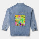 Esta chaqueta de denim muestra una porción de un diseño más grande. En verano se respira el color amarillo, verde limón, rosa, naranja, turquesa, agua, negro, coral, azul y más. Usé capas sobre capas de colores y texturas en diversos grados de opacidad para dar esta profundidad y lo más importante... ¡DIVERTIDO!