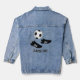 A fun jacket with a soccer theme on the back. The design has soccer boots and a ball on the back, with a caption that you can customize "GAME ON" in black text.