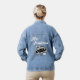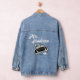 ¡Tan romántico y retro! La señora y el nombre de la novia después del día de la boda con el Boda Fecha en la parte trasera del lindo y caprichoso auto clásico en la parte trasera de esta muy linda Chaqueta Denim para la recién casada de luna de miel.