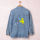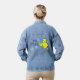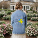 La patineta de esquí en texto rizado con una chica amarilla sosteniendo esquís y rodeada de copos de nieve es un diseño divertido para los amigos y la familia que esquian.