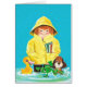 Artista: El chica del tejedor el | de Jack con el impermeable se coloca en charcos con la rana, el perro, y el pato