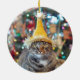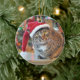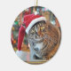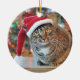 Ornamento del gato de Tabby con el gorra de Santa y Años Nuevos festivos de gorra