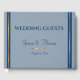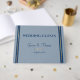 Un Charm del Sur, Azul con Oro Boda Libro de Huéspedes diseñado en azul suave con acentos de Marina y Oro. Para personalizar, simplemente inserte los Nombres y la Fecha de Boda de la novia y del novio utilizando nuestra plantilla sencilla, reemplazando el texto de ejemplo.
