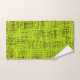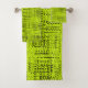 Un diseño abstracto de gris negro y carbón vegetal adorna un fondo de chartreuse en este moderno juego de toallas de baño.