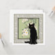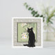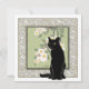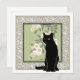 Envuelto contra una masa de flores de manzana hay un bonito gato negro con ojos dorados rodeado de un marco Art Nouveau ornamentado. Artista, Margaret Loftin Whiting.