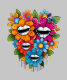 A vibrant bouquet of flowers with smiling lips, ready to brighten your day with a chat.
