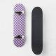 This quality made skateboard is shown in a purple and white checkered print.