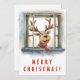 Explore el encanto de la temporada de vacaciones a través de nuestra tarjeta de Navidades personalizada, que incluye un delicioso ilustracion acuático que captura a un encantador reno echando un vistazo juguetón a través de una ventana, agregando un toque de brillo a sus saludos. Personalizar esta tarjeta de excelente calidad con tu propio mensaje, evocando la magia de las vacaciones y difundiendo cálidos deseos con elegancia artística. Comparte esta delicia única y preciada con tus seres queridos, celebrando la alegría de la temporada.