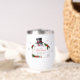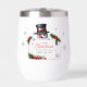 The design features a cheerful snowman holding a sign with holiday greetings on a simple white background. This wine tumbler is guaranteed to bring delight to wine connoisseurs as they savor their favorite beverage during the winter months.