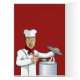 Cabeza del chef con gorra, pañuelo rojo y texto personalizado.