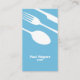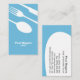 Un chef moderno y contemporáneo o una carta de negocios de cocina en azul elegante con siluetas blancas de un cuchillo, cuchara y tenedor. Personalizable de áreas de texto para nombre, título o nombre comercial y otra información de contacto en la parte posterior. Diseño elegante y elegante, disponible en diferentes colores. Para solicitudes de personalizado o ayuda para personalizar, por favor, utilice el enlace de contacto de tienda anterior.