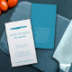 Sencillas tarjetas gráficas profesionales de negocios en un verde azul verde azulado y en contraste con el blanco con el arte de los cuchillos de un simple chef gráfico moderno. Ideal para chefs personales, comercios de restauración, restaurantes, chefs profesionales, escritores de comida y otros negocios relacionados con la comida. Personalizar con su propio nombre de negocio de catering, dirección, nombre, sitio web, número de teléfono y acerca de su información de servicios texto al revés. Diseño y trabajo artístico de Sarah Trett.