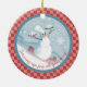 Mi chef, un muñeco de nieve vacacional de los Navidades del 2011, monta una colina abajo con 2 platillos de bolas de nieve. Un suave estilo acuático con tonos azules claros y toques de color con un fondo de tablero de ajedrez de color personalizado, perfecto para colgarse en tu árbol en tu restaurante o en la oficina de comidas, o para regalar a tu cocinero o cocinero favorito.