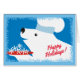 Oso polar dulce con chef gorra que sirve una cena de copas de nieve en esta carta de Navidades culinarios para chefs, restaurantes y otros profesionales de la cocina o de la restauración.