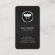 El diseño de la tarjeta de visita de este chef personal, fuerte y elegante, presenta una sutil textura de color negro oscuro como telón de fondo. La parte superior de la tarjeta tiene un icono cromado de tamaño medio de un gorra chef. Su nombre y título aparecen en el medio, en letras brillantes fáciles de leer, mientras que los detalles de contacto aparecen en la parte inferior de la tarjeta en letras más pequeñas pero limpias y legibles. Perfecto para la comida, el restaurante, la comida, la restauración, los temas de servicio, pero puede ser utilizado para casi cualquier negocio o industria.
