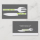Chef personal minimalista tarjetas de visita blanco negro, con un cuchillo blanco y un tenedor sobre fondo gris/gris y texto en verde lima. Perfecto para cocineros, chefs personales, chef de cocina.