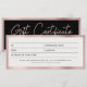 Un hermoso y moderno modelo de negocio falso rosa oro rosa y negro certificado de regalo con guión de moda, y logo de negocios. Este diseño de certificados de regalo es ideal para todo tipo de negocios. Simplemente personalizar y hazlo propio.