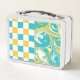 Cheques y remolinos es para todo aquel que ame el diseño retro y una estética turquesa y amarilla. Este diseño podría hacer el regalo perfecto para un hijo, hija, o sólo para ti si te gustan los diseños a cuadros.