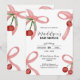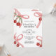 ¡Celebra la bendición más dulce de la vida con nuestra invitación a la ducha de "Cherry Coquette Baby"! Este diseño adorable rebosa de cerezas jugosas, arcos de bonito y un follaje acuático, creando un ambiente fresco y moderno, perfecto para una ducha de bebé de primavera, verano o temática de jardín. Ideal para celebraciones de niñas, niños o niñas sin distinción de género.