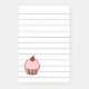 Un quequito rosado decora este elegante post que nota. Estas notas son geniales para el hogar, la cocina, la escuela, la oficina, los negocios, una panadería, listas de compras, listas de compras, etc... El diseño es de arte original.