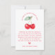 Comparte tu gratitud con estilo con esta tarjeta de agradecimiento de esta ducha de bebé dulce. Con cerezas de color agua rojo con hojas verdes exuberantes y un suave fondo acentuado por perlas, este diseño combina perfectamente con el tema de la ducha para bebés "cerezo arriba". El mensaje más sincero hace que sea fácil mostrar aprecio a los invitados mientras mantiene la celebración cohesiva y encantadora. Una manera encantadora de terminar tu evento con amor y dulzura.