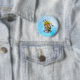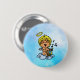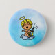 Esta es una foto de un botón redondo o un pin con una imagen personalizado de un cherub tocando un arpa sobre un fondo del cielo. El cherub tiene pelo rubio, un halo y notas musicales a su alrededor. La imagen tiene un estilo bonito y caprichoso.