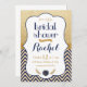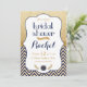 Invitación moderna de estilo vintage. Azul y oro reales.