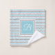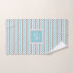 Conjunto moderno y moderno de toallas de baño con un patrón de chevron en monograma blanco, gris, azul y personalizable con un elegante estilo de letra de escritura a mano blanca (sólo en ropa de lavado y toalla de mano).