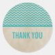 Modernos con un giro vintage son estos Pegatinas de la Moda Chevron Gracias. Este diseño presenta un fondo de papel antiguo y un patrón de chevron zigzag en turquesa. Fácil de personalizar, simplemente añada los detalles de su boda. Haga clic en "Personalizar" para encontrar más opciones de personalización.