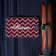 Hip y de moda Chevron Purpurina Look Lumaletas Tag. Esta etiqueta de equipaje genial tiene un patrón de zag de chevron zig encima de un fondo de arte digital rosado purpurina. Añadir texto a este diseño para darle un toque personal.