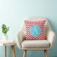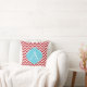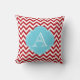 Chevron rojo y blanco raya la almohada azul del monograma.