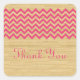 Moderno y de moda Chevron Rústico Gracias Pegatinas que presentan un fondo de textura de grano de madera impreso en arte digital y un patrón zig zag de rayas de chevron magenta. Este diseño es perfecto para una boda rústica y elegante. Fácil de personalizar, simplemente añada el texto personalizado de su elección. Haga clic en "Personalizar" para encontrar más opciones de personalización.