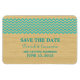 Moderno y moderno Chevron Rústico Salven el imán Date Premium con un fondo de textura de carpintero impreso en arte digital y un patrón zig zag de franjas verde azuladas de chevron. Este diseño es perfecto para anunciar una boda rústica y elegante. Fácil de personalizar, simplemente añada los detalles de su boda. Haga clic en "Personalizar" para encontrar más opciones de personalización.