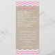 Chevrons rosa y blanco sobre un fondo burlap ilustrado acento en este programa de bodas. Desplácese hacia abajo para ver el resto de la colección y si se necesitan elementos adicionales para su boda, póngase en contacto con nosotros en prettyfancyinvites@gmail.com con su solicitud.