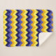 Una manta de sherpa de tamaño pequeño con un diseño tierno y sombrío de chevrons en azul, amarillo y oro.