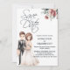 Esta adorable plantilla de tarjeta boda cuenta con un ilustracion estilo chibi de la novia y el novio, que le da un toque divertido y sincero a su día especial. Perfecto para las parejas que buscan ofrecer un poco de diversión y personalidad a su papelería boda