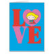 Echa un vistazo a Chibi Supergirl dentro de un corazón de ping que representa la "O" en este logo apilado de "LOVE".