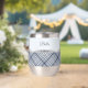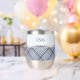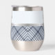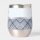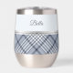 Sip in style with our modern plaid boutique-style insulated wine tumbler. This 12oz stemless tumbler features a sophisticated milky blue and charcoal gray diagonal plaid pattern on the lower half, beautifully balanced by a crisp light blue top field. A delicate silver-tone decorative line adds a touch of refinement, while the elegant script text for the name is set as a template for easy personalization. Whether for a backyard sunset, a girls' trip, or a cozy evening in, this tumbler keeps your favorite vintage at the perfect temperature while looking effortlessly chic. Perfect as a personalized birthday gift, bridesmaid favor, or a stylish addition to your own sophisticated wine glass collection.