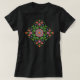 Una camiseta 'Bella' negra y elegante para mujer, con un colorido patrón de Rangoli floral en un fondo azul profundo que puedes cambiar si lo deseas. Parte de la colección 'Rangoli' de Posh & Painterly, este patrón se puede ajustar para adaptarse a cualquier camiseta.