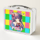 Estuche de teléfono personalizado. Chica de anime con arcos y colas de cerdo comiendo un arte de personalizado de maní con mantequilla de maní y sandwich de jalea.