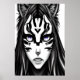 chica de anime blanco y negro con orejas de gato y ojos morados. Este es un arte generado por IA.