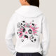 Esta tibia hoodie de fútbol chica presenta una "explosión" de balones de fútbol de tamaño variado y formas estrella rosadas, grises y blancas - un diminuto patrón de puntos de polka blanco sobrepasa la estrella gris - personalizar con el nombre del atleta, número de monograma y camiseta - el diseño está en la parte delantera de la hoodie pero se puede mover o duplicar en la parte trasera - por katz_d_zynes