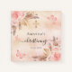 Fondo de gradiente dorado rosa y ruidoso. Decorada con oro rosa, flores rosadas, pampas y mariposas. Con una cruz dorada. Personalice y agregue un nombre y una fecha. Se puede usar como libro de invitados o para planificar el evento.