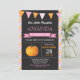 Invitación de cumpleaños de calabaza para Chica. Invitación al cumpleaños de la pequeña calabaza. Primer cumpleaños. rayas Naranjas y rosas, fondo de pizarra.