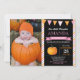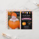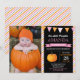 Invitación de cumpleaños de calabaza chica con foto de personalizado. Pequeña Invitación de cumpleaños a la caída de calabaza. 1.ᵉʳ Primer Cumpleaños. rayas naranjas y rosas, fondo de pizarra. Para una mayor personalización, haga clic en el botón "Personalizar" y utilice nuestra herramienta de diseño para modificar esta plantilla.