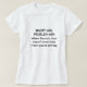Una camiseta blanca que dice el "problema corto #24 del chica. Cuando la visera incluso no ayuda cuando usted está conduciendo"
