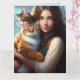 CHICA CON CAT CATS ART BIRTHDAY Tarjetas de saludo